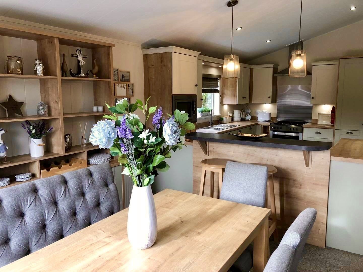The lodge features a gorgeous kitchen area, fully equipped with all you need for your break. including fridge, freezer, dishwasher , washing machine & dryer, oven, hob, microwave, toaster, kettle and the list goes on.